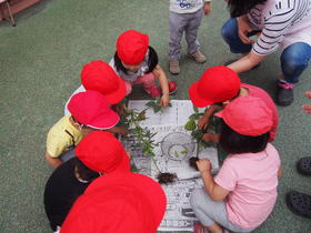 2歳児クラスで野菜の収穫をしました
